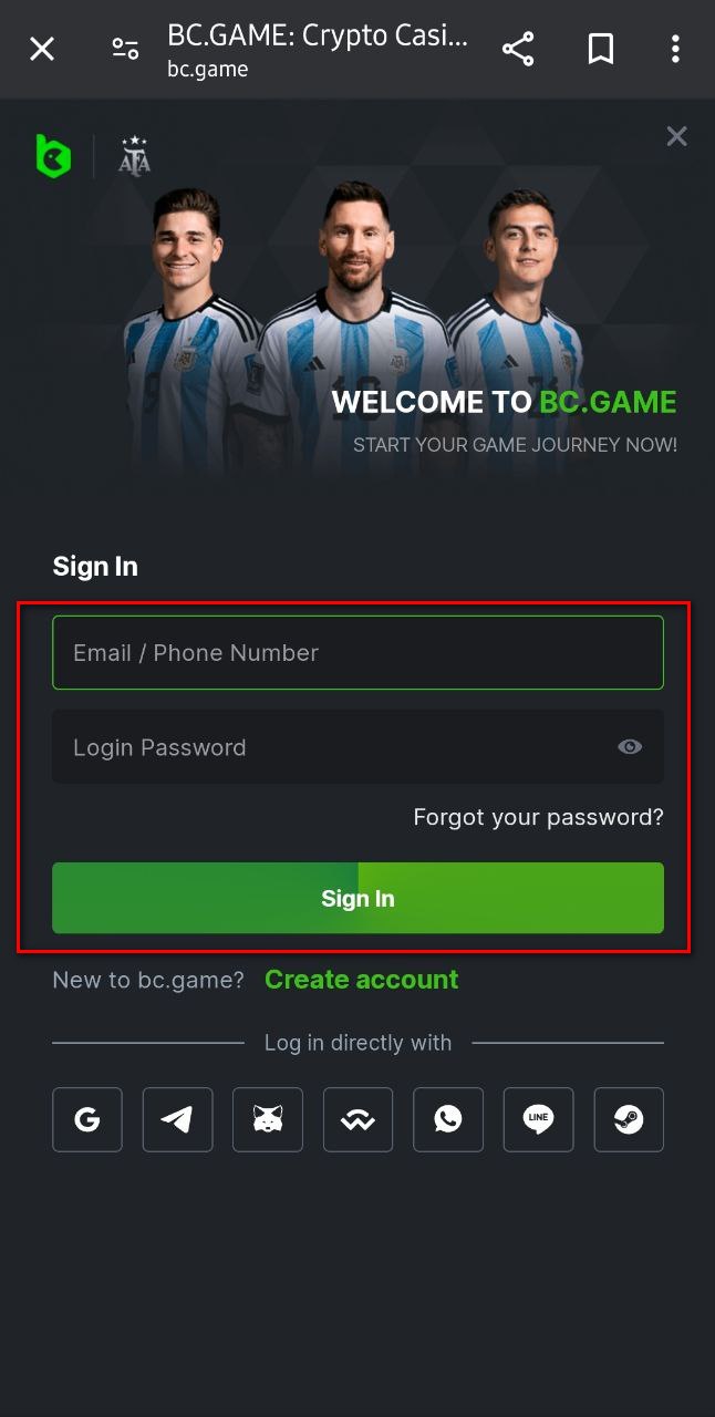 - Open BC.Game on your browser. If you’ve added BC.Game to your home screen, simply tap the shortcut. Otherwise, open your browser and navigate to the BC.Game website as described above.